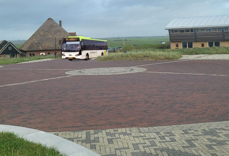 De buslus is bestraat met dikformaten, ook hier fungeert de verharding als spons. Drainvoegen zorgen voor afvoer van hemelwater naar de ondergrond. De buslus – met drainvoegen – ligt er na jaren gebruik nog net zo bij als bij oplevering in 2017.